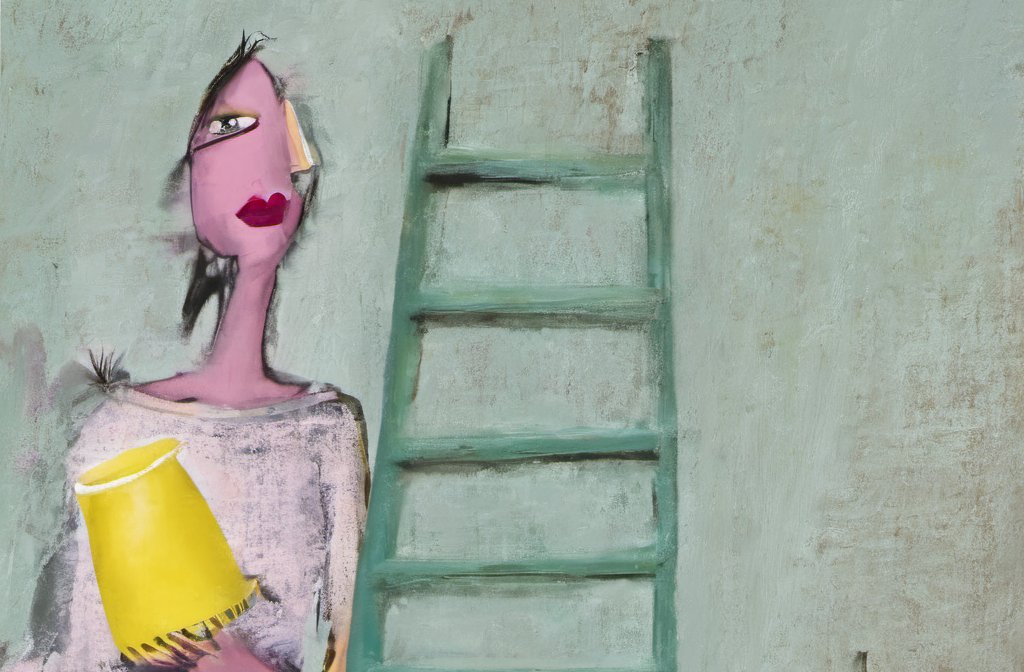 3348509913-DPM++ 2M-7-surrealistic, ochre to white_pencil, brush, hand mirror, lavender, BREAK _ cup, comb, chair,lipstick, nose, ear, yellow to pink,