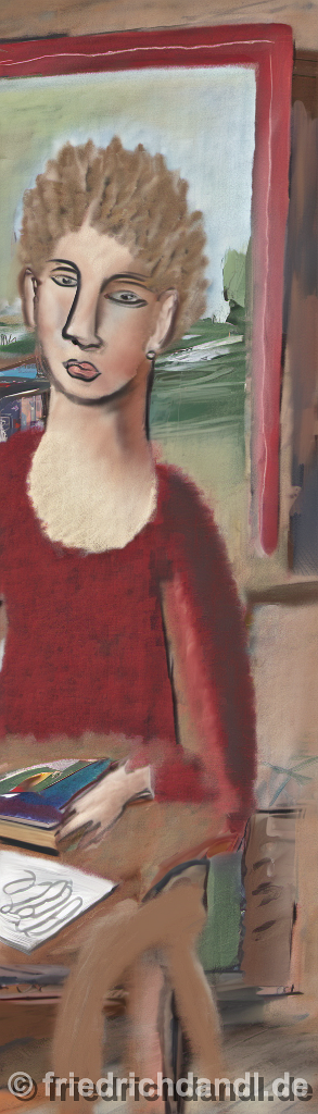 968037821-DPM++ 2M-8-lady-portrait-photo in the foreground, in the background oak to buegreen, sofa, table, plant, book,little window with sea view