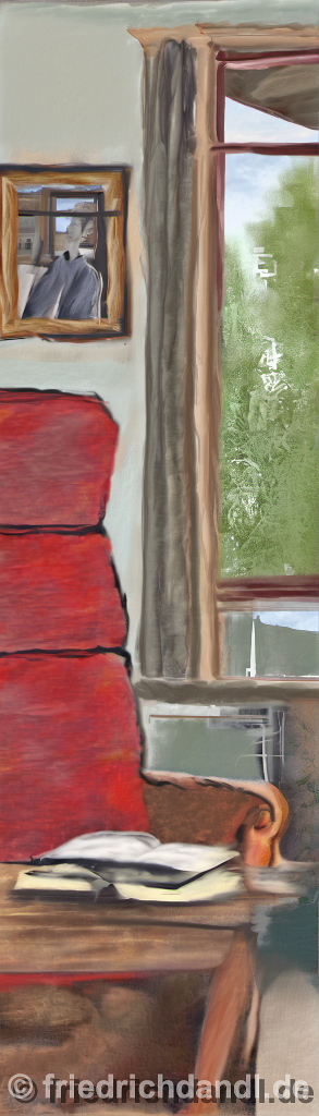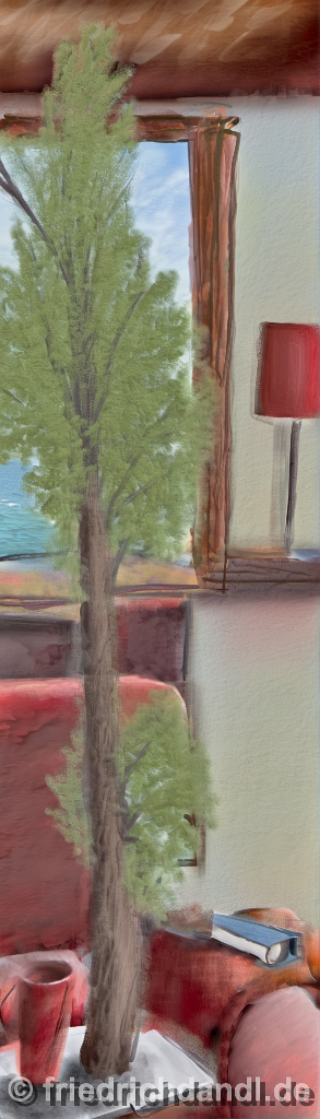 462111513-DPM++ 2M-8-girl portrait-photo in the foreground, in the background oak to buegreen, sofa, table, plant, book,window with sea view, paint