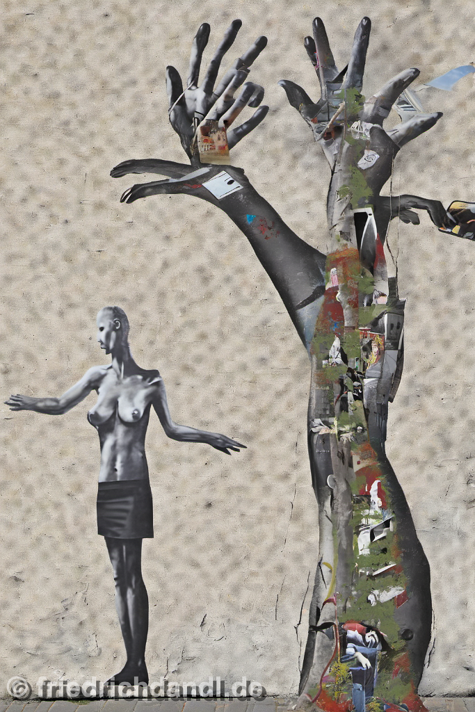 3765978814-DPM++ 2M-8-street art, collage, scissors, wall, surrealistic,tree with hands and feets_ _lora_FDandlSty2_1_