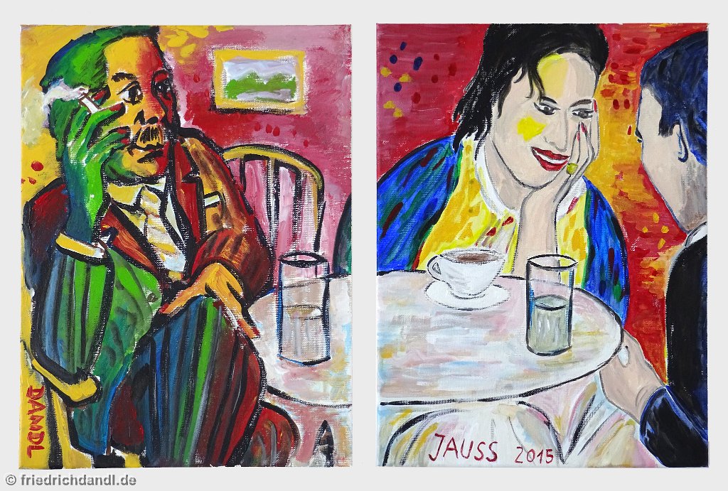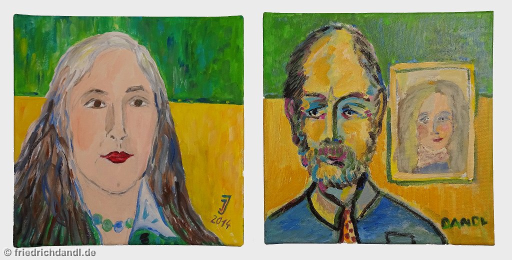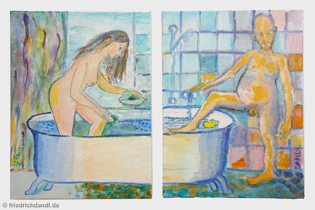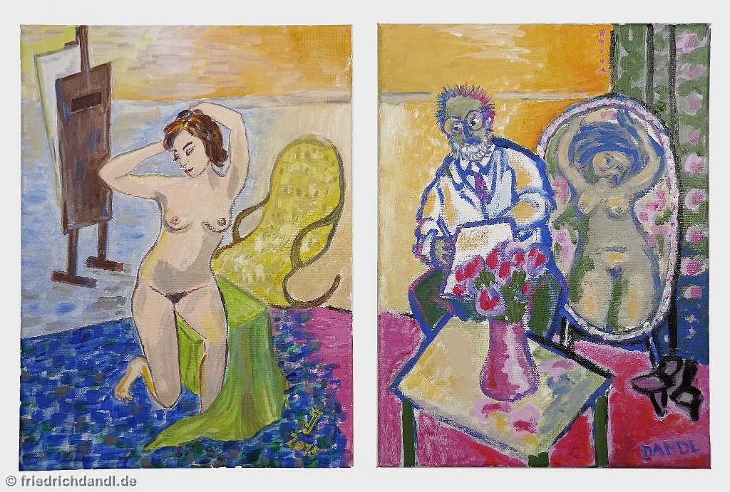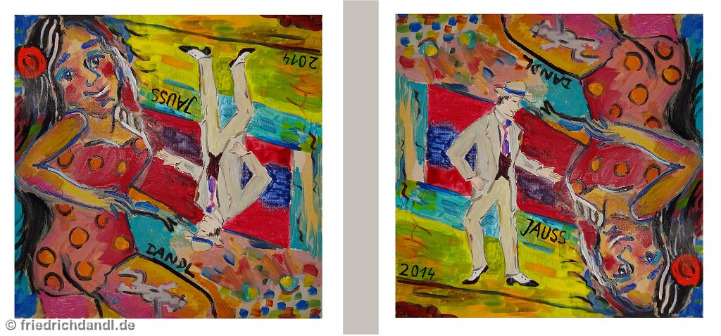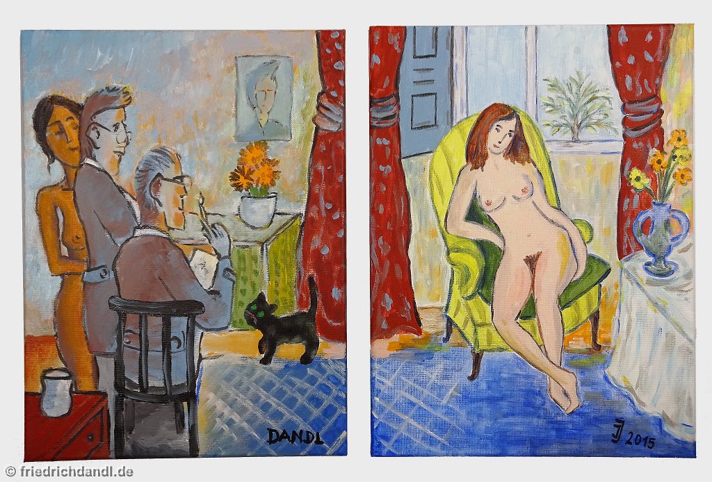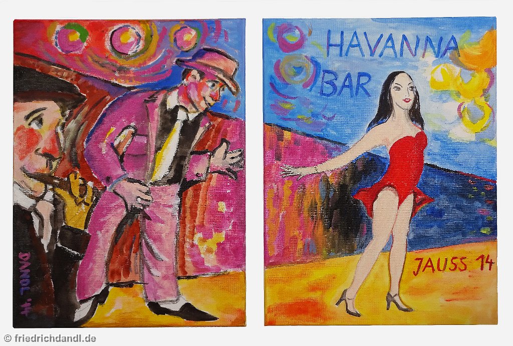 Malschüler und ModellAcryl auf 2 Leinwänden 30x40cm Havanna BarAcryl auf 2 Leinwänden 30x40cm Maler und ModellAcryl auf 2 Leinwänden 30x40cm Latin DanceAcryl auf Leinwand 50x50cm Maler und ModellAcryl auf 2 Leinwänden 30x40cm Das BadAcryl auf 2 Leinwänden 30x40cm Maler und ModellAcryl auf 2 Leinwänden 30x40cm SelbstbildnisseInge Jauß und Friedrich Dandl, Acryl auf 2 Leinwänden 30x30cm