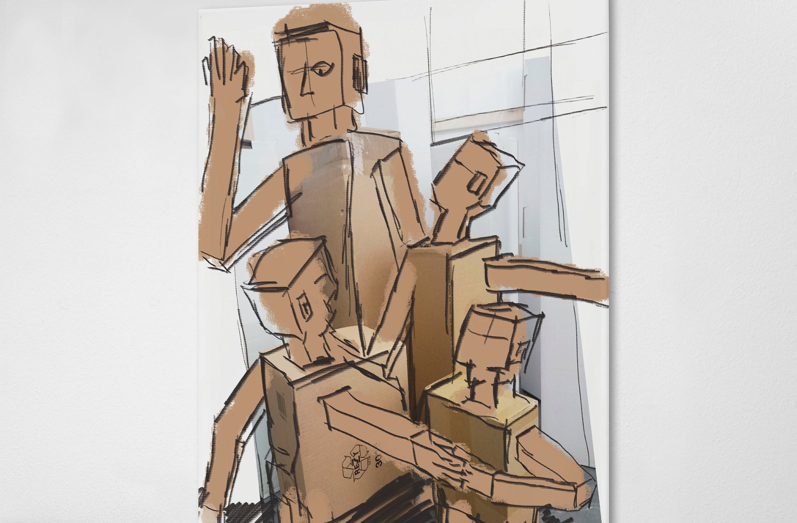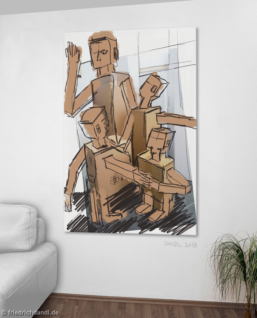 18268a_The initial state of_ The re-education of robots to humans Art print on 380g polycotton canvas 18268_The re-education of robots to humans Art print on 380g polycotton canvas 18267a_The Initial stage of_ The puppets of consumption work perfectly Art print on 380g polycotton canvas The re-education of robots to humans (Video 0 min 58 sec)