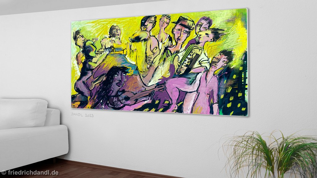 In this artwork, the design elements of painting, music and film merge into a multimedia work of art.