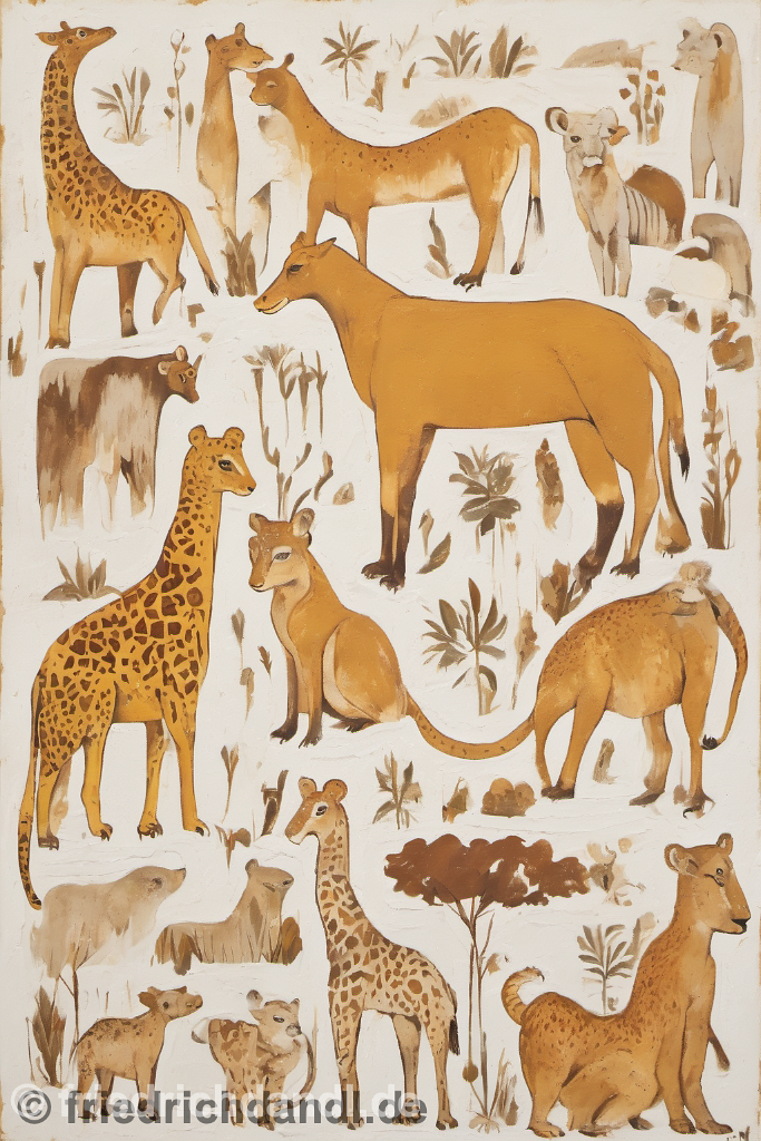 00114-[number]-3476457106-DPM++ 2M-6.5-naive painting on white canvas, zoo-animals, sienna-ochre-browne__lora_FDandlSty6_1_
